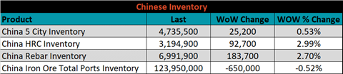 Raw material prices were mixed, with Aussie coking coal up another 4.2%, while Black Sea pig iron was down 4.4%.