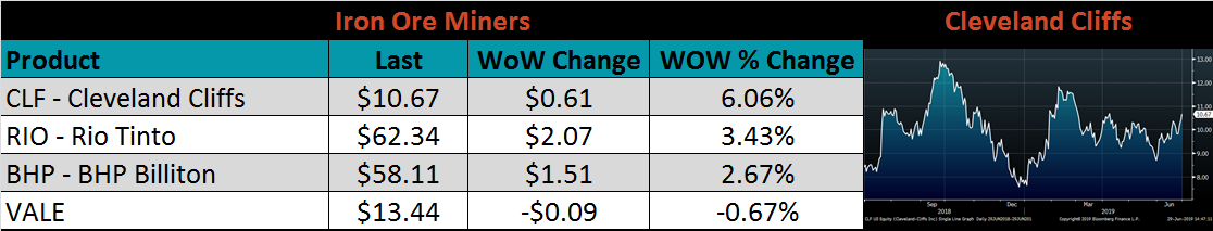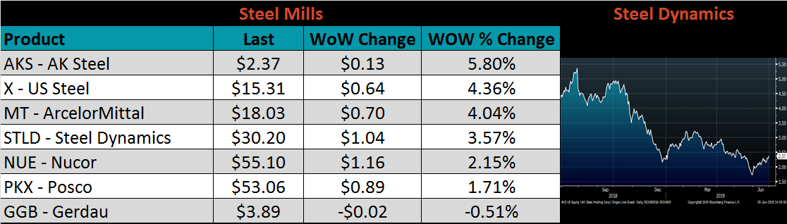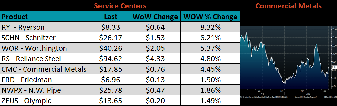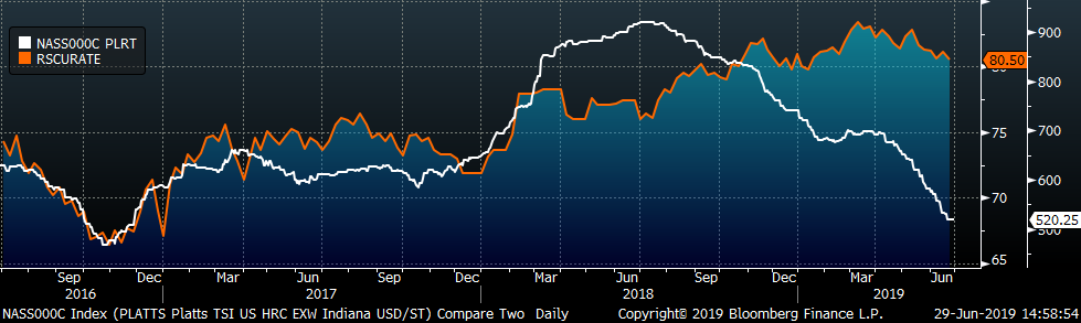 The AISI Capacity Utilization Rate was down 0.6 points to 80.5%. The Trump administration’s goal of 80% Capacity Utilization Rate that has held since October 2018, but announced production cuts should threaten this level.