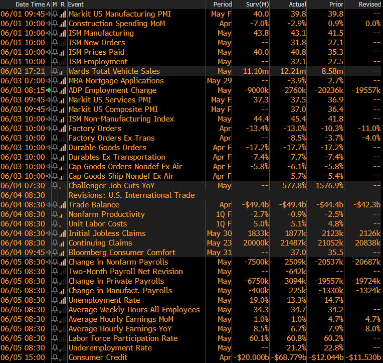 The May ISM Manufacturing PMI and subindexes are below. The topline PMI number rose 1.6 points to 43.1 but remains in contraction.