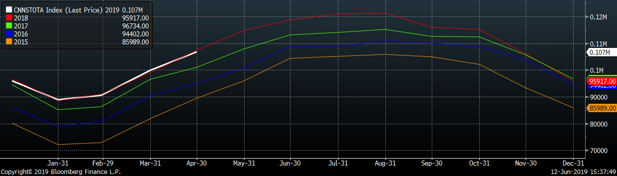 Below is May import license data through June 4, 2019.