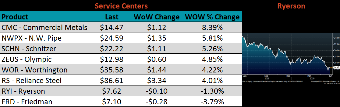 Domestic prices are significantly cheaper than most import offers, leading us to believe that there is too much domestic production, and imports should continue to fall moving into the 3rd quarter. Profitability on the marginal ton continues to decline, with integrated mills losing money on tons sold in the spot market and mini-mills near their breakeven level. Higher scrap prices or lower spot HRC prices will further squeeze profit margins and lead to reduced production while imports are shrinking and service center inventories are dwindling. This will create a deficit in tons, which cannot last for extended periods.