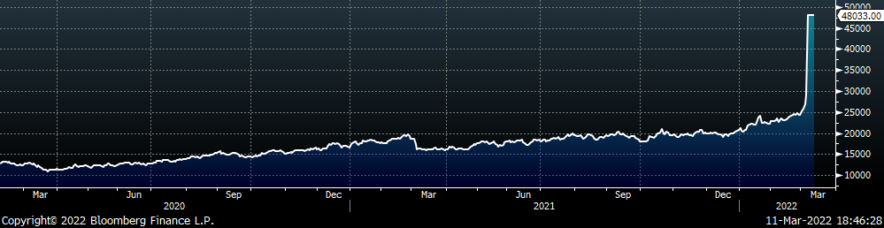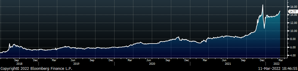 Last week, as the physical market started to wake up to the far-reaching consequences of the Russian invasion into Ukraine, spot prices began to mirror what we saw in the financial markets the day after the conflict began. Namely, few offers at elevated prices that rarely lasts more than 24 hours. While the severity of the price bounce was driven by the Russian invasion, the fact remains that prior to the conflict, the market was firming, and the bottom was in sight. However, due to the conflict, the main driver of what will propel spot prices in the physical market forward is very different than what was experienced in 2020 and 2021.