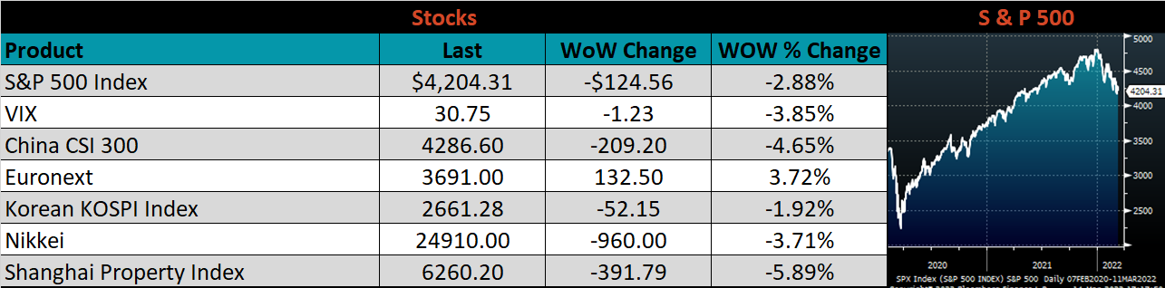 Last week, the April WTI crude oil future lost $6.35 or 5.5% to $109.33/bbl. The aggregate inventory level was down 1.1%, while crude oil production remains at 11.6m bbl/day. The Baker Hughes North American rig count was up 2 rigs, and the U.S. rig count was up 13 rigs.