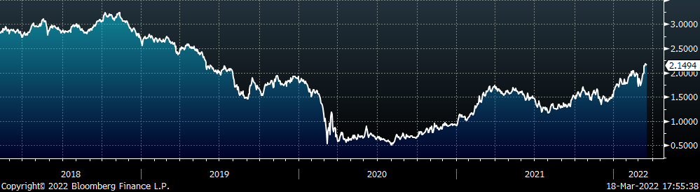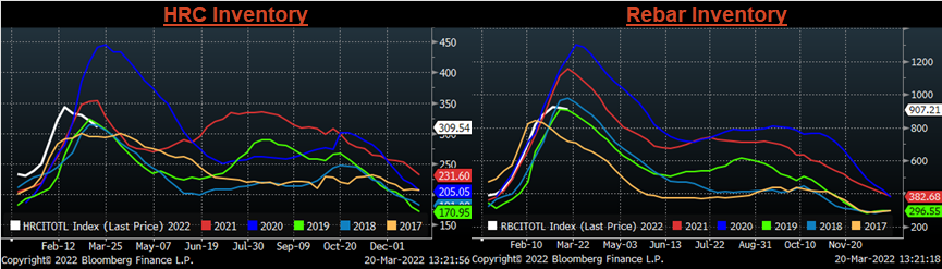 Estimates suggest that most mills have approximately two months of raw material inventory on hand at any time. That means that the ripple effect of them reckoning with input costs that are already 20-50% higher than last year’s peak has not started. Taking a step back, the real problem today is that there is not a straight-forward solution to the problem we currently face. Even an overnight resolution to the war does not fully bring back global production that has been sucked out of the market, and it likely does not normalize trade and sanctions between the West and Russia. This suggests that the factors driving this upcycle are even more uncertain than the previous cycle which led to record high prices. Moreover, $2,000/t HRC prices are no longer uncharted territory, and the most likely result of all this cost pressure is that those previous highs will eventually be tested.