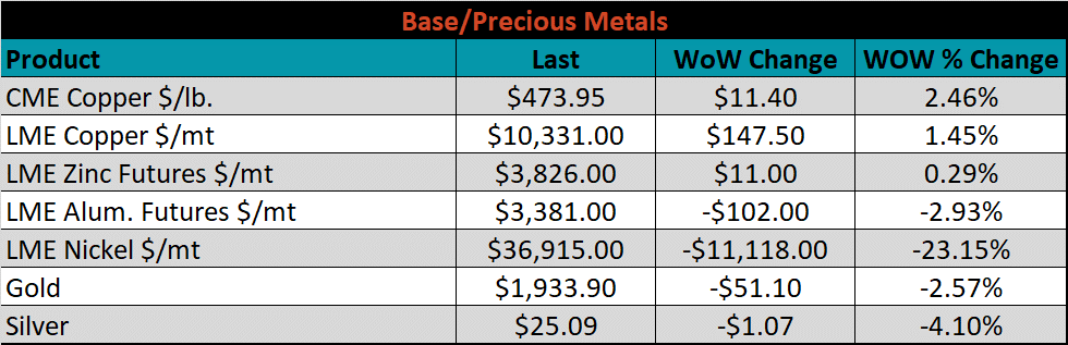 The CME Midwest HRC futures curve is below with last Friday’s settlements in white. The entire curve shifted lower, after 3 straight weeks of significant increases. Prices from May onward remain more than $500 higher than a month ago.