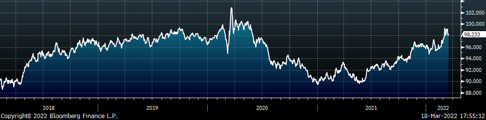 During the 2020-2021 rally, mills were reluctant to raise prices, due their own operational issues and the unprecedented nature of the rally. No one in the marketplace knew whether steel consumers would be able to turn inventory above $1,400 or if buyers would ever be willing to pay $2,000 for steel, until it happened. It has not even been 6 months since prices peaked and anyone who thinks mills don’t remember how much you were willing to pay last year is only fooling themselves. The difference between then and now, however, is that pricing decisions are going to be largely driven by a shortage in raw materials, thus directly impacting margin at the mills. The chart below shows pig iron (blue), busheling (white), and shredded scrap (green) over the last 5 years.