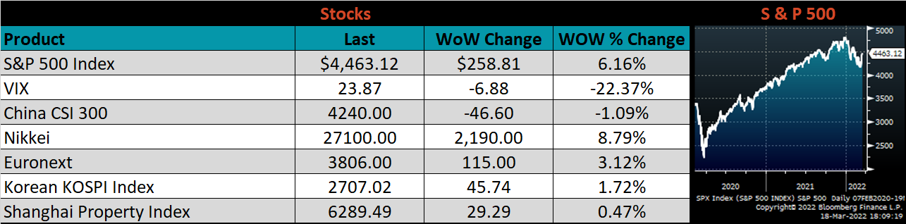 Last week, the April WTI crude oil future lost another $4.63 or 4.2% to $104.70/bbl. The aggregate inventory level was up 0.1% and crude oil production remains at 11.6m bbl/day. The Baker Hughes North American rig count was down 30 rigs, and the U.S. rig count was unchanged.