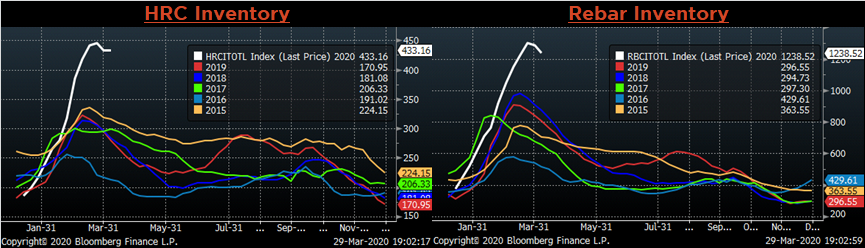 After trying to recover from the initial drop in late January, the China price collapsed in March below the previous low from October. As the price in China fell, we also saw the forward curve in the domestic market come under pressure. This continued weakness in HRC prices across the globe leads us to believe that a recovery will take much longer than previously thought, and it is less likely that we will see pre-crisis prices or economic activity any time soon. While many factories shut down overnight, it will take them much longer to ramp up production, and even longer for economic demand to support that production. Future stimulus is likely to be geared to helping restore demand once the crisis is past. However, it is impossible to know when the crisis is peaking, and even tougher to predict what the economy will look like on the other side.