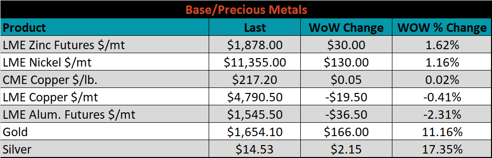 The CME Midwest HRC futures curve is below with last Friday’s settlements in white. The entire curve moved higher, most significantly in the back.