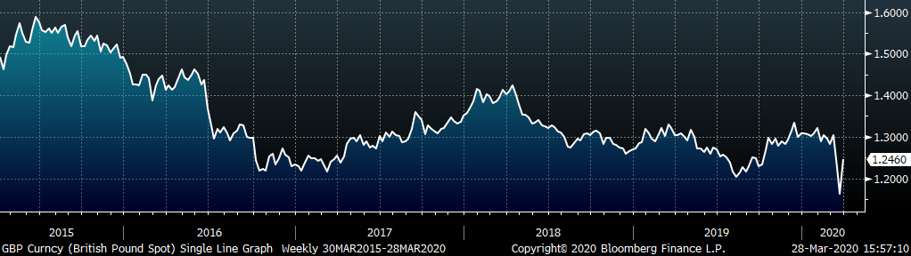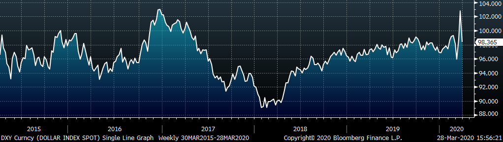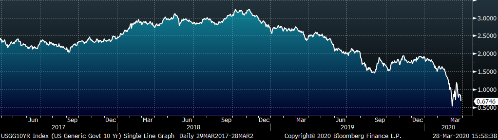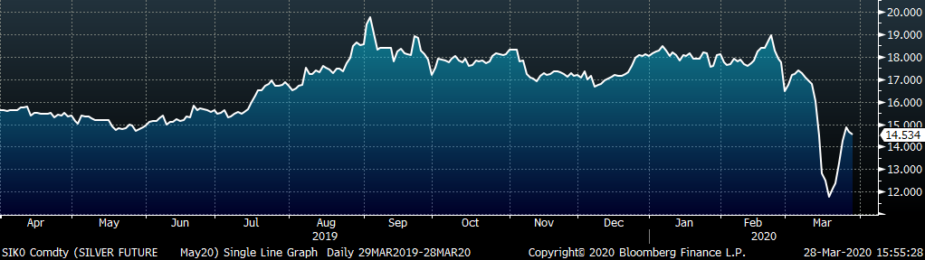 Last week, the May WTI crude oil future lost another $0.92 or 4.1% to $21.51/bbl. The aggregate inventory level was down 0.1% and crude oil production fell to 13m bbl/day. The Baker Hughes North American rig count was down 88 rigs, while the U.S. rig count was down 44 rigs. It is likely we will see production decline over the coming weeks as storage capacity shrinks.