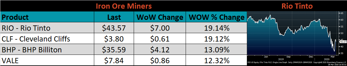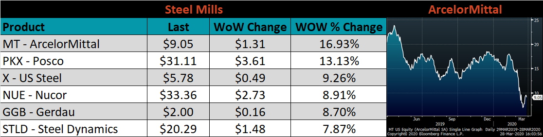 Raw material prices were unchanged or lower. Midwest shredded was flat, while East Coast shredded was down 15% and Rotterdam HMS was down another 14.9%.