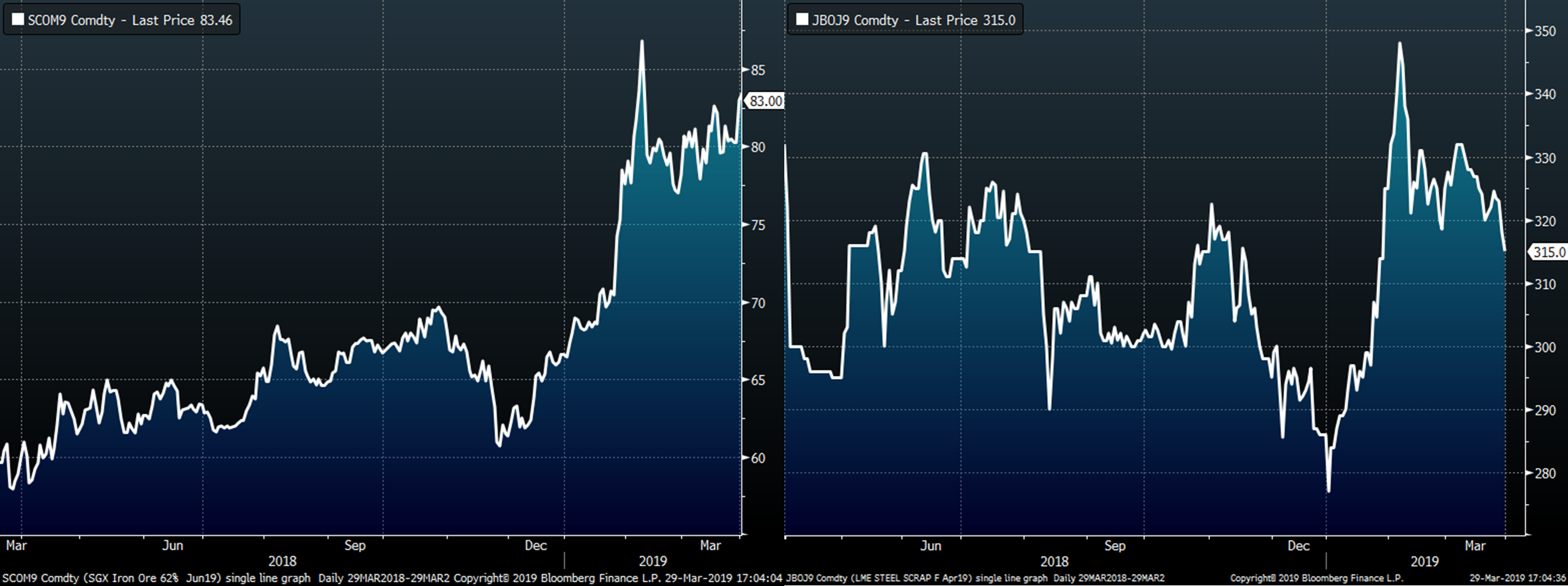 The June SGX iron ore future gained $3.52 to $83 and the April Turkish scrap future lost $7 to $315.