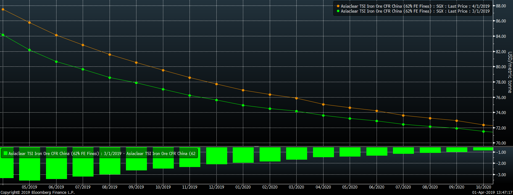 The SGX iron ore futures curve has held most of the gains made following the Vale dam disaster.