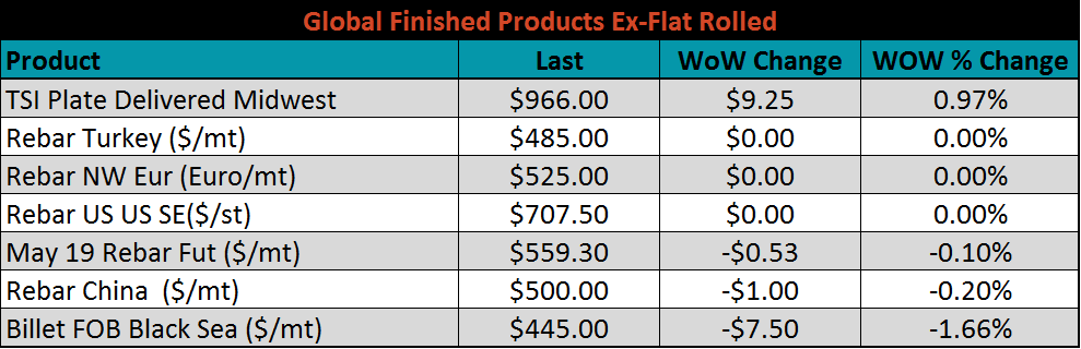 Ex-flat rolled prices saw little movement.