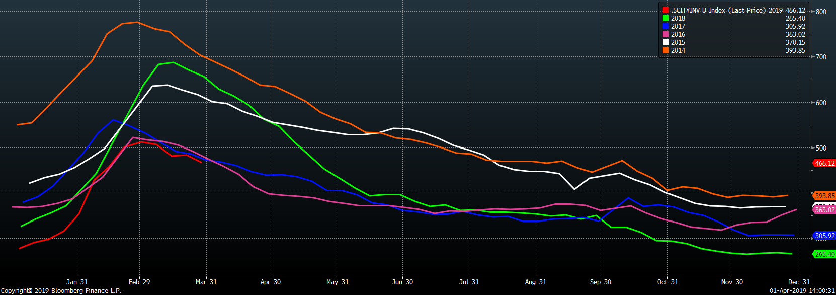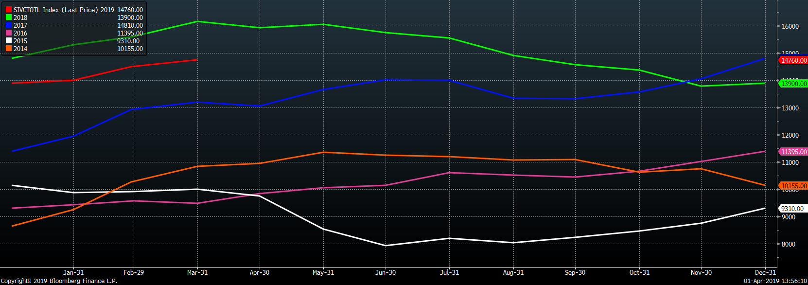 Below is March import license data through March 27, 2019.
