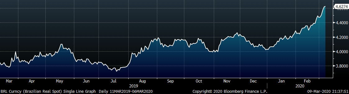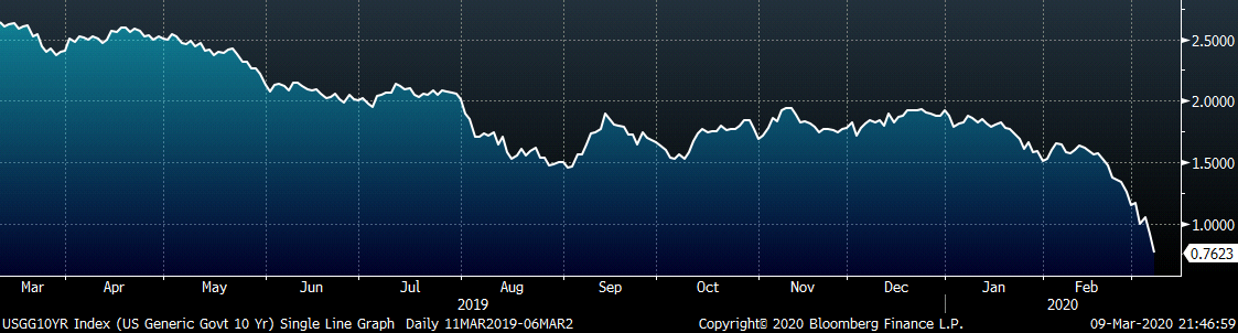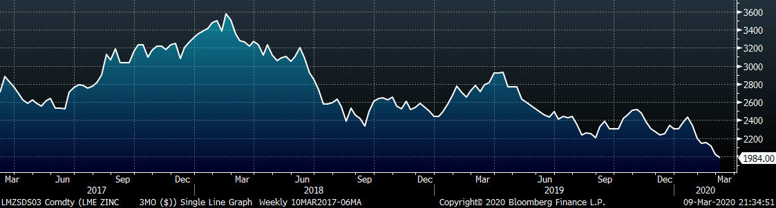 Two weeks ago, mills increased prices by $40, and in normal times, we would know by now what spot prices the market would accept. However, now there is arguably more uncertainty as to price outlook. Mills have maintained their offers at $600 and have no reason to negotiate lower yet as they maintain strong order books for the next few months. However, buyers are sticking to their strategy of only buying material on their contracts at discounted levels to the spot index. With the mounting uncertainty around the coronavirus and its effects on the economy, there is no reason for buyers to take a risk through purchasing or holding inventory. Over the last week, some risks to the economy have exhibited themselves in asset prices and economic data, causing many to predict an economic downturn or recession. This week we will dive into some of them.