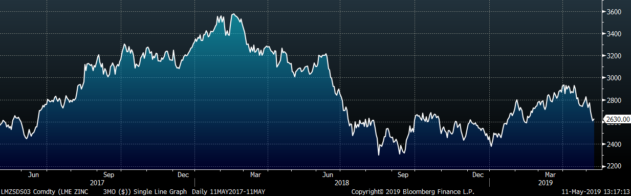 Base metal futures were mostly lower, led by zinc, which lost 5.1%.
