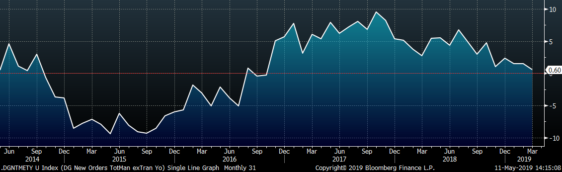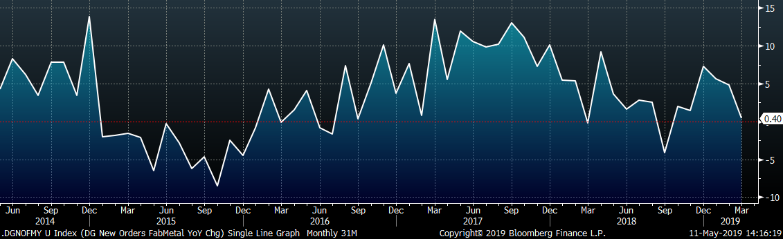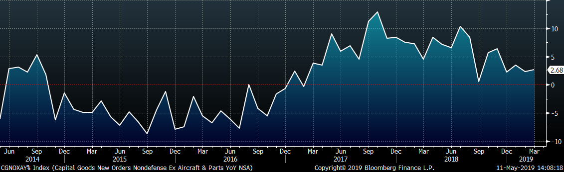 Below are final March new orders from the Durable Goods report. New orders grew YoY in most categories, excluding defense, reflecting stable growth on top of last year’s high levels. The demand destruction that many projected at the end of 2018 is not surfacing in the data.