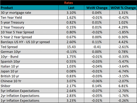 Last week, the July WTI crude oil future was down $1.79 or 2.7% to $63.58/bbl. The aggregate inventory level was down another 0.4%, while crude oil production remains at 11m bbl/day. The Baker Hughes North American rig count was up 1 rig, and the U.S. rig count was up 2 rigs.