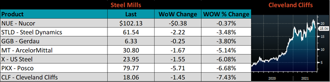 Over the past year, the Chinese HRC and iron ore prices have led global prices higher, including our domestic price, as they were the first to be hit by and recover from the pandemic. Last week, the China spot price was down 12.9% and the iron ore price has been under significant pressure for the last two weeks. In a normal market, we would view this as a serious crack to the domestic rally that needed to be immediately accounted for. However, the move lower and additional downward pressure comes from government actions to reduce speculation and pollution. The likely result of these events in China is reduced production, which has been a stated goal for months. Supply and demand are not the forces driving their market lower; therefore, we believe they are disconnected from what has fueled the historic rise in global pricing. On a global level, China’s reduced production, in the face of strengthening demand and global steel shortages should only make the problems worse.