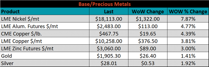 SBB Platt’s HRC, CRC and HDG pricing is below. The Midwest HDG, HRC & CRC prices were up, 1.5%, 1.3% and 1.2%, respectively. Globally, the Chinese export HRC price was down another 8.7%.