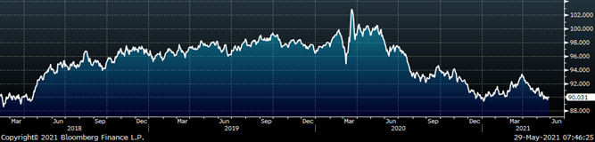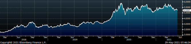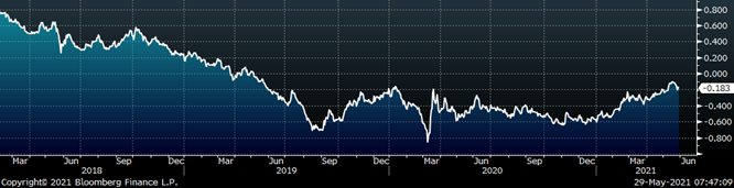 After the overall curve peaked and sold-off in early May, the front of the curve has rebounded, with June and July at all-time highs, while the back of the curve remains severely depressed from the elevated levels 3 weeks ago. The movement of these three datapoints: price, open interest and net spec positioning suggests that the buying (from commercial participants) and selling (from speculators) has occurred more significantly in near-term expirations. From a business and hedging perspective all this attention on the front of the curve could be a good opportunity to start looking at 2022 before contract negotiations, which will be much earlier than usual and provide additional upside pressure to the curve.