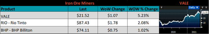 Raw material prices were mixed, with Aussie coking coal up another 11.5%, while the IODEX was down 5.3%.