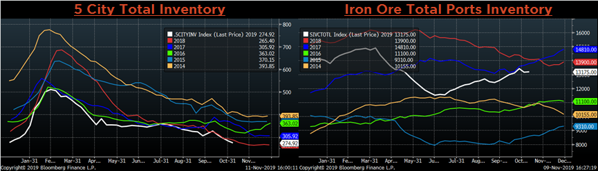 December ferrous futures were mixed. The iron ore future lost 4.7%, while the Nasdaq Shred future gained 7.4%.
