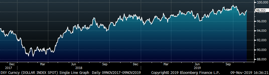 This week, the ISM Non-Manufacturing Index printed above expectations of 53.5 at 54.7, up 2.1 points from September. This, along with the University of Michigan Expectations index printing 0.2 points higher than expectations at 95.7, is another data point suggesting that consumer confidence remains strong in the U.S. economy, despite the manufacturing slowdown.