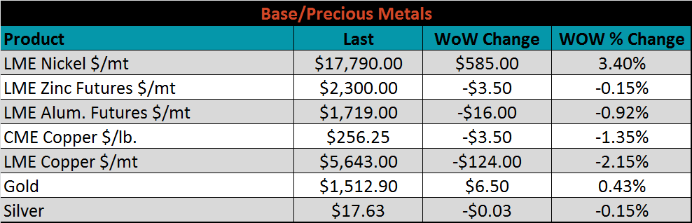 Raw material prices were mixed. Midwest busheling was down 14.3%, while coking coal was up 7.3%.