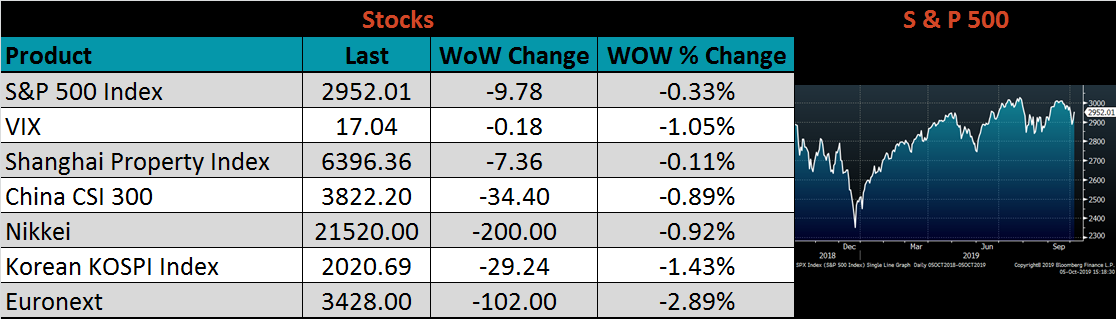 This week’s report covers the first week of the month, which includes multiple applicable economic indicators released last week, described in detail in the report below. September ISM Manufacturing PMI hit the lowest level since June 2009, global manufacturing PMIs were slightly stronger in September from their very low levels of August, construction spending data declined YoY in August, and the September auto sales were seasonably weak. While all of these data points can undoubtedly weaken further, it will likely take a recessionary environment for them to do so. Furthermore, the market is a discounting mechanism that takes current data and expectations into account when determining price. Therefore, the current economic weakness is likely already priced into most assets, signaling that there is less risk to the downside as prices fall.