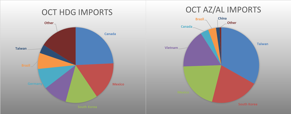October flat rolled import license data is forecasting an increase of 204k to 981k MoM.