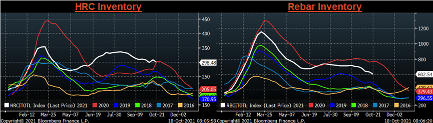 Last week was significant for the physical market, as some of the numbers that have been floated through the rumor mill started to show up in published HRC spot prices. As lead times continue to come in and limited spot tons enter the market, it is becoming clear that more mills are willing to negotiate to make sales. With mills operating at record levels of profitability, the big question around what the downside of this cycle will look like is if any of the big 4 are willing to cut into profitably per ton for the opportunity of larger market share. Over the last 5-10 years, we’ve looked to EAF mills as first movers with more flexibility in both output and cost to anticipate new trends. Looking forward, it is less clear how dynamics between EAFs and BOFs will influence the spot prices for both steel and scrap. In the remainder of this week’s report, we will dive into the global dynamics shaping the scrap market over the next couple of years and how the potential global energy crisis may bring that timeline forward.