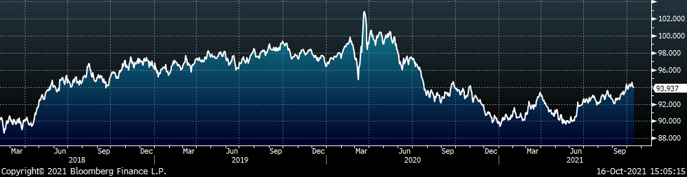 Last week, the November WTI crude oil future was up another $2.93 or 3.7% to $82.28/bbl. The aggregate inventory level was up 0.5%, and crude oil production increased to 11.4m bbl/day. The Baker Hughes North American rig count was up another 11 rigs, and the U.S. rig count was up 10 rigs.
