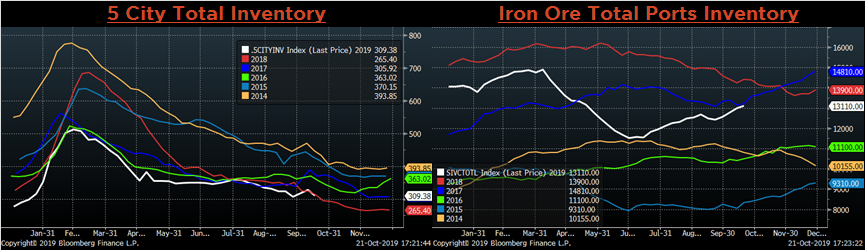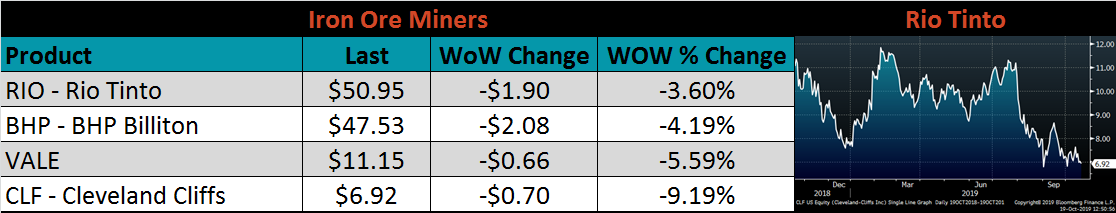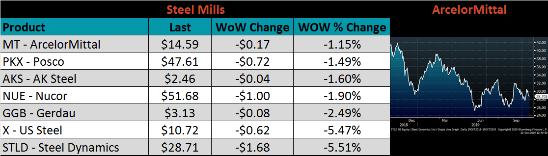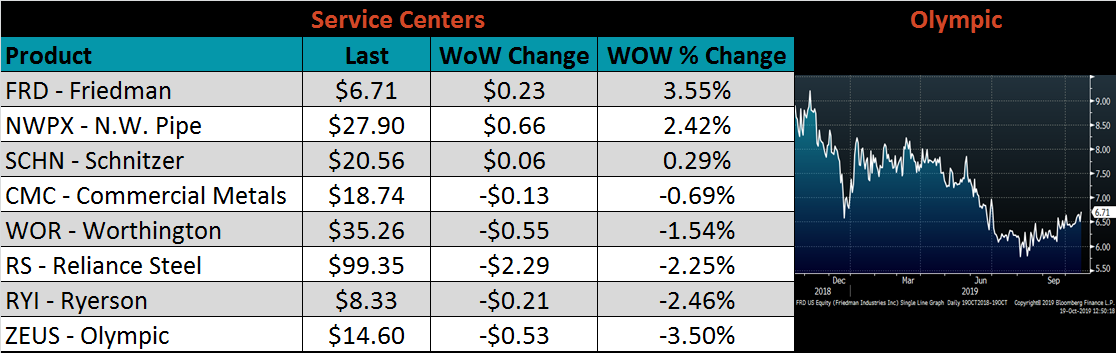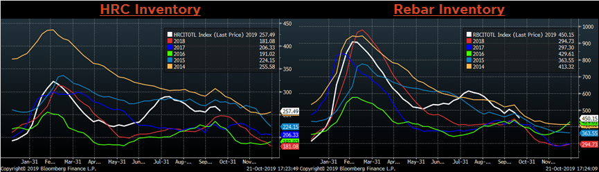 The AISI Capacity Utilization Rate was up 0.7% to 78.7%, and remains below the 80% goal set by the Trump administration. Mills are likely bringing production forward due to planned outages in the 4th quarter.