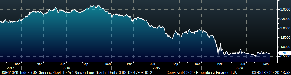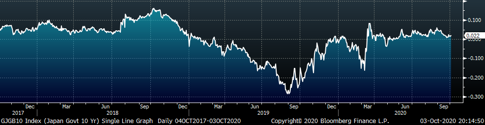 The U.S. 10-year yield was up 5 bps, closing the week at 0.70%. The German 10-year yield was down 1 bps to minus 0.54%, while the Japanese 10-year yield was up 1 bps to 0.02%.