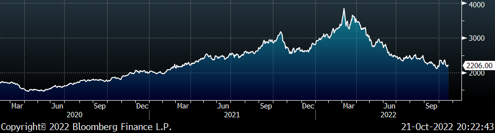 If this trend persists while domestic production and import arrivals simultaneously decline, the physical market would be at increased risk of a temporary shortage causing support for falling domestic prices. Furthermore, mills appear to be doubling down on last year’s strategy of reducing their overall contract books to increase spot market activity. Because of this, the longer buyers wait to restock in a more competitive spot market, the more significant a short squeeze would become. At the same time, we do not anticipate an impact from these dynamics until 1Q23 at the earliest, given the normal seasonality of the domestic market, unless unforeseen catalysts in steel demand arise.