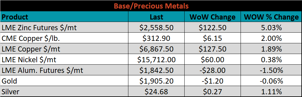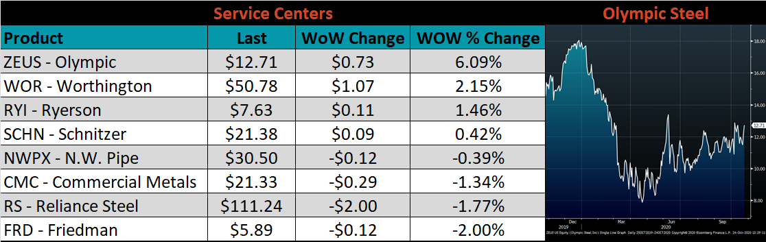 SBB Platt’s HRC, CRC and HDG pricing is below. The Midwest HRC, HDG and CRC prices were up, 4.3%, 2% and 1.2%, respectively. Globally, the Northern European HRC price was up 2.8%.