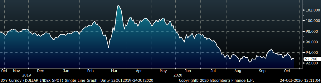 Last week, the December WTI crude oil future lost $1.03 or 2.52% to $39.85/bbl. The aggregate inventory level was down another 0.3%, while crude oil production fell to 9.9m bbl/day. This is the first time production is below 10m bbl/day since February 2018. The Baker Hughes North American rig count was up 8 rigs and the U.S. rig count was up 5 rigs.