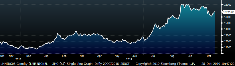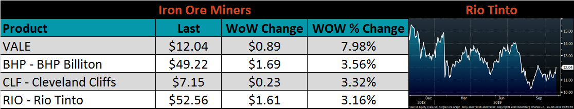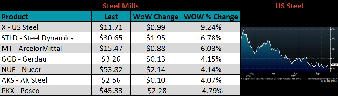 The AISI Capacity Utilization Rate was up 0.9% to 79.6%. Production has been climbing recently and the utilization rate has been inching closer to the 80% goal set by the Trump administration. It is difficult to see a significant price rally in the months ahead with the current level of production and additional capacity to be added next year.