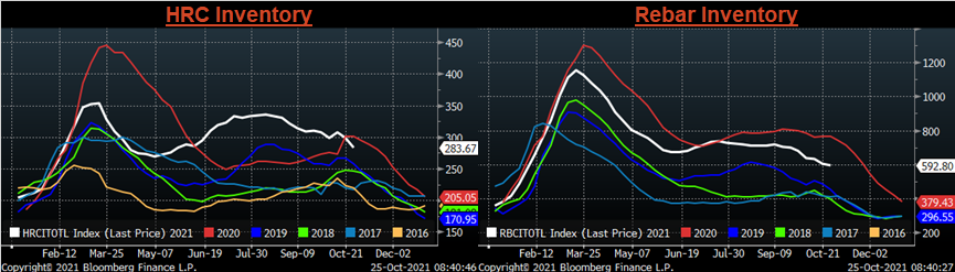 Last week was a quiet week in the physical market, as spot pricing continued its grind lower, albeit at a wide range of offerings depending on specs and geography. As we get closer to the end of the year, it appears as though neither mills nor buyers want to do anything to rock the boat. Lead times continued to dip slightly, and additional mills have started to offer limited spot availability (for mid-December production). However, the seasonal slowdown within the steel market has not yet provided a light at the end of the tunnel for current logistics hurdles. This will be one of the most important stories for the beginning of year, as anticipated import arrivals are expected to be higher even higher in 1Q22. In the remainder of this report, we will analyze recent news around steel trade negotiations.
