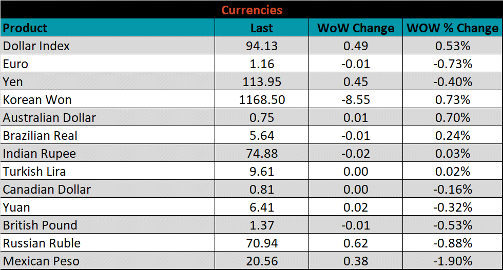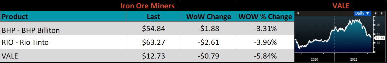 The CME Midwest HRC futures curve is below with last Friday’s settlements in white. Last week, the curve was mixed, with the front end lower.