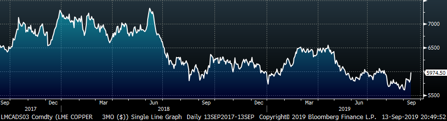Base and precious metals future pricing was mixed. LME copper gained 2.5%, while silver lost 3%.