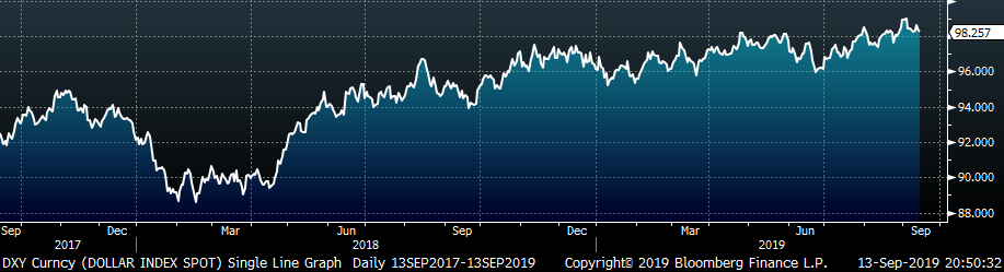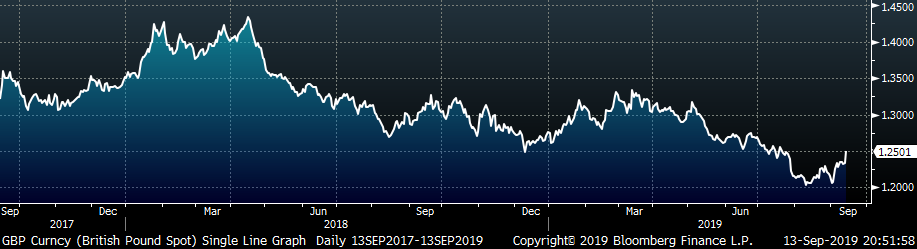 Last week, the October WTI crude oil future lost $1.67 or 3% to $54.85/bbl. The aggregate inventory level was 0.6% lower, and crude oil production was unchanged 12.4m bbl/day. The Baker Hughes North American rig count lost twenty-five rigs and the U.S. count lost twelve. Shockwaves were sent through the energy market after the weekend attack on Saudi Arabia’s oil production facilities, but implications appear subdued with production being restored quicker than expected.