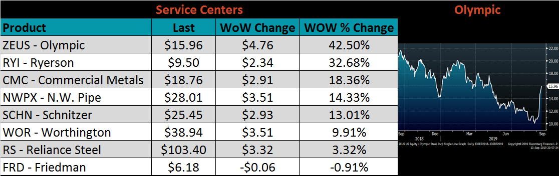 The global flat rolled indexes were all lower. Midwest HDG was down the most, at 2.6%.