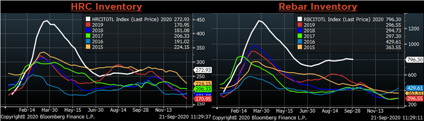 September flat rolled import license data is forecasting a decrease of 68k to 538k MoM.