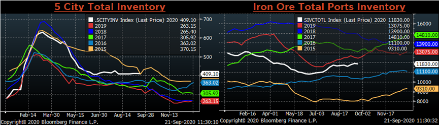 October ferrous futures were mixed. Aussie coking coal gained 15.2%, while iron ore lost 2.3%.