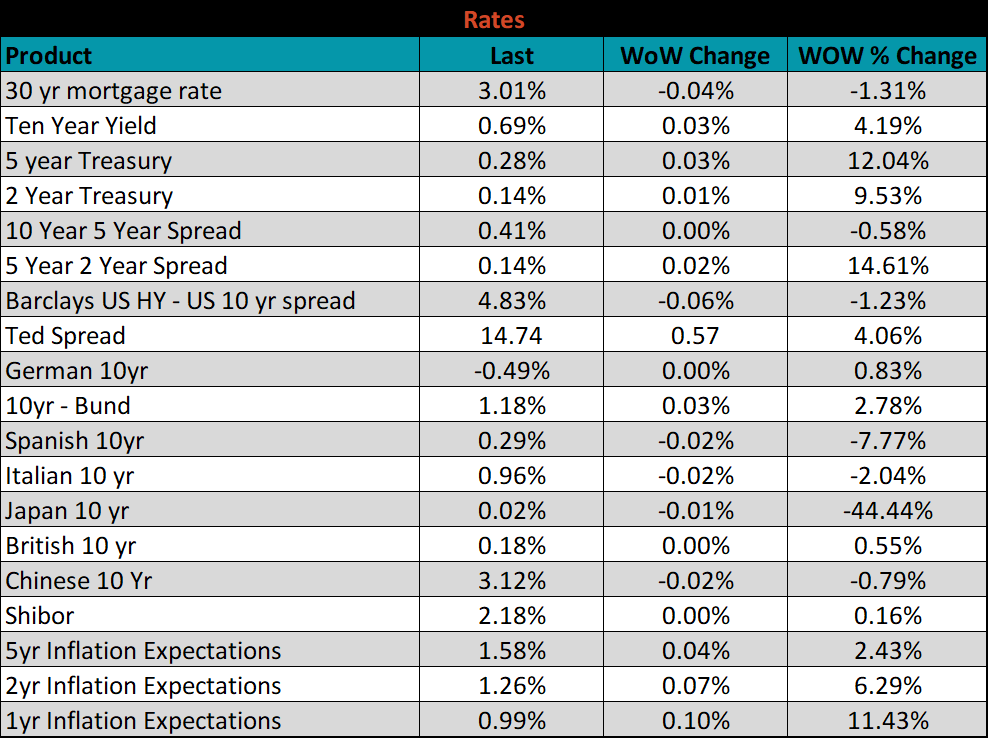 Last week, the October WTI crude oil future gained $3.78 or 10.1% to $41.11/bbl. The aggregate inventory level was down another 0.1%, while crude oil production rose to 10.9m bbl/day, up 9%. The Baker Hughes North American was up 13 rigs, and the U.S. rig count was up one rig.