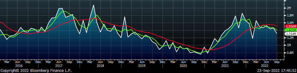 Tube imports license data is forecasting an increase of 62k to 512k in September.