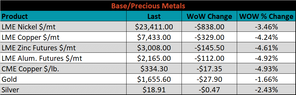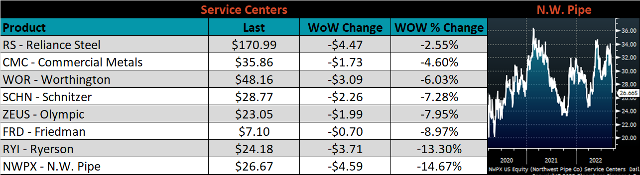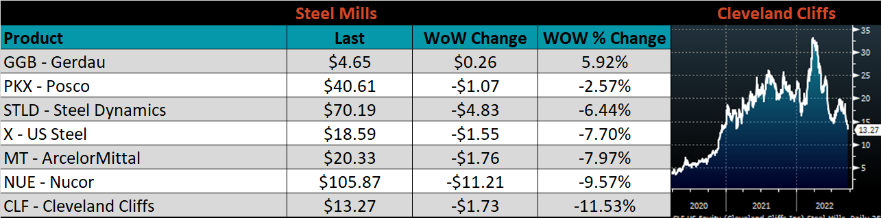 The AISI Capacity Utilization was down 1.3% to 76.9%, the lowest since January 2021.